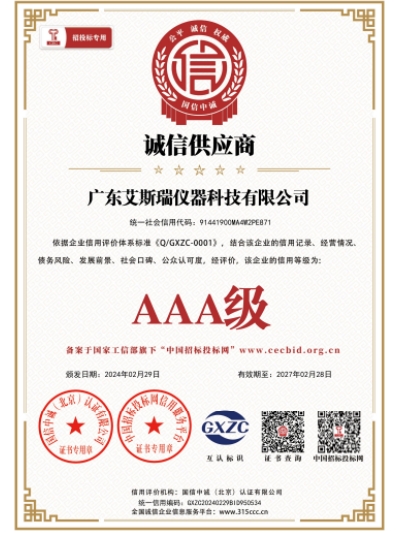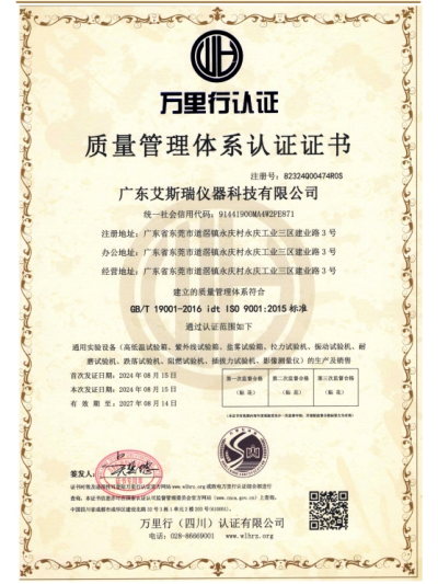 广东艾斯瑞仪器科技有限公司 广东艾斯瑞仪器科技有限公司在东莞道滘投产,厂房面积38000平方,是一家拥有着多年试验机研发、设计、生产的厂家,经验雄厚并与国内外知名企业合作,产品远销世界多个国家和地区。 产品符合标准:ISO、AATCC、ASTM、DIN、EN、GB、BS、JIS、ANSI、UL、TAPPI、IEC、VDE….均可用,产品广泛适用于:科研单位、质检机构、大专院校以及电子电器、涂料、箱包、胶粘、手机、纺织、玩具、橡胶、塑料、金属、电线电缆、制鞋、皮革、包装、建材、石化、航空…等产业,为材料开发、物性试验、教学研究、品质管理、进料检验等必备。 艾斯瑞仪器将建立起遍布亚、美、欧三大洲的专业研发网络,建立健全创新机制及知识产权管理平台,为公司发展奠定基础,从而成为国内企业中产品驰骋全球的先导者。 公司自成立以来坚决以品质为核心,精美外观设计为中心,以及认真务实的工作精神,更好服务于广大客户并赢得良好的口碑。我们将一如既往,坚持以“诚信经营”为本,“品质至上”为主,服务至上为宗旨,用创新的思路和技术设计产品,保证优良的品质,品质管理、进料检验等必备。